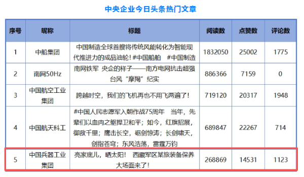 兵器工業(yè)集團2篇文章入選中央企業(yè)新媒體“熱門文章” |